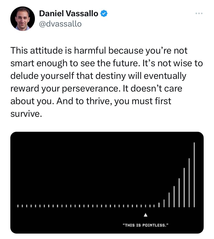 Something worth pondering. Yet, a clarification is needed here: I don’t want you to quit what you’re doing. Because consistency truly is king.