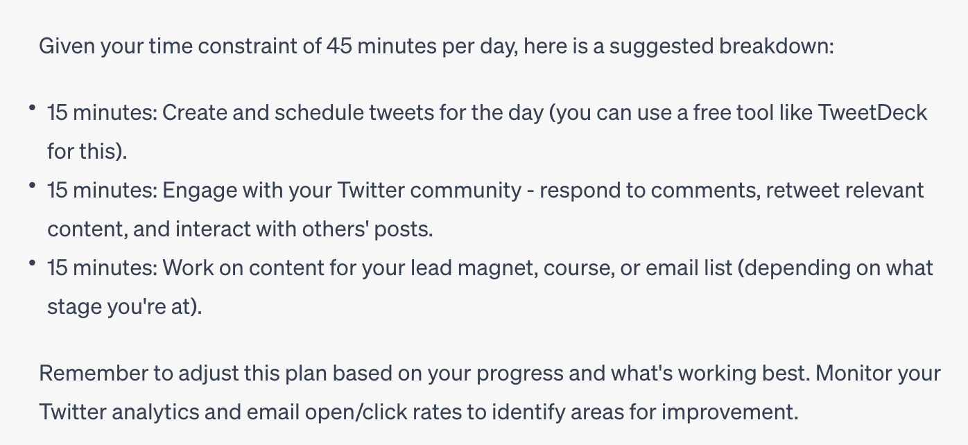 Now, you have a functional customer journey, with simple instructions on how to get started. Obviously, you don’t trust the AI blindly, as e.g. TweetDeck certainly is not the best tool for creating and scheduling.