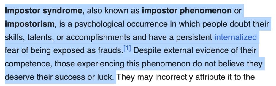 You don’t get imposter syndrome unless you are being seen (or judged) by someone.